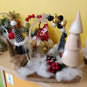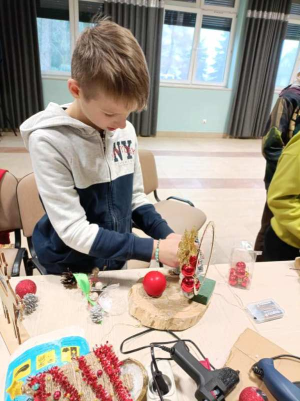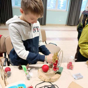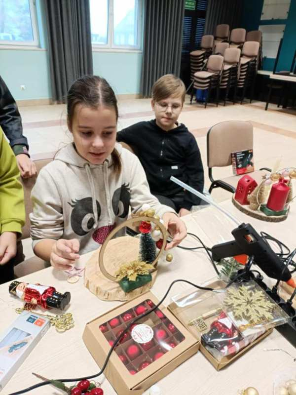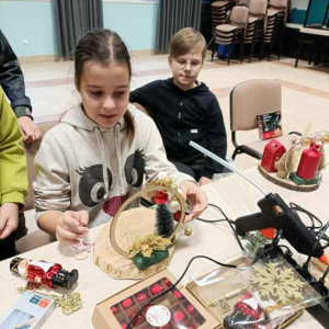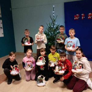 Dnia 8 grudnia uczniowie klasy trzeciej wzięli udział w wyjątkowych warsztatach bożonarodzeniowych zorganizowanych w Bibliotece Publicznej. Pod okiem Pani Marioli oraz wychowawcy uczestnicy tworzyli własne stroiki świąteczne, wykorzystując naturalne gałązki, ozdobne wstążki, świece oraz różnorodne elementy dekoracyjne. Praca twórcza przebiegała w radosnej, przedświątecznej atmosferze. Uczniowie mieli okazję nie tylko rozwinąć swoją kreatywność, ale także poznać podstawy komponowania dekoracji oraz znaczenie tradycji bożonarodzeniowych. Powstałe stroiki zachwycały pomysłowością i starannością wykonania, a każdy uczestnik zabierze swoją świąteczną kompozycję do domu. Dziękujemy Bibliotece Publicznej za gościnę, inspirujące zajęcia oraz stworzenie miejsca, w którym uczniowie mogli poczuć magię nadchodzących świąt.