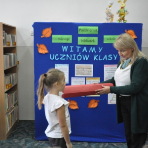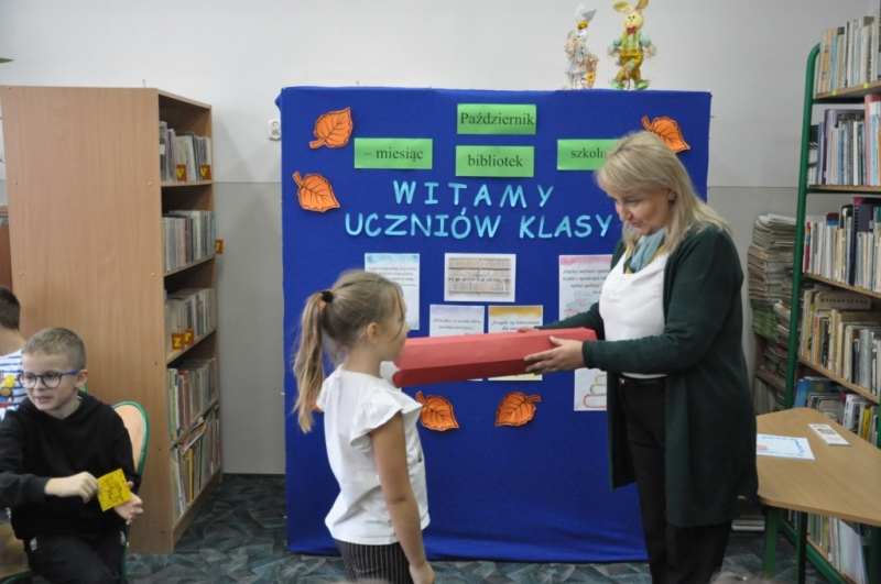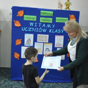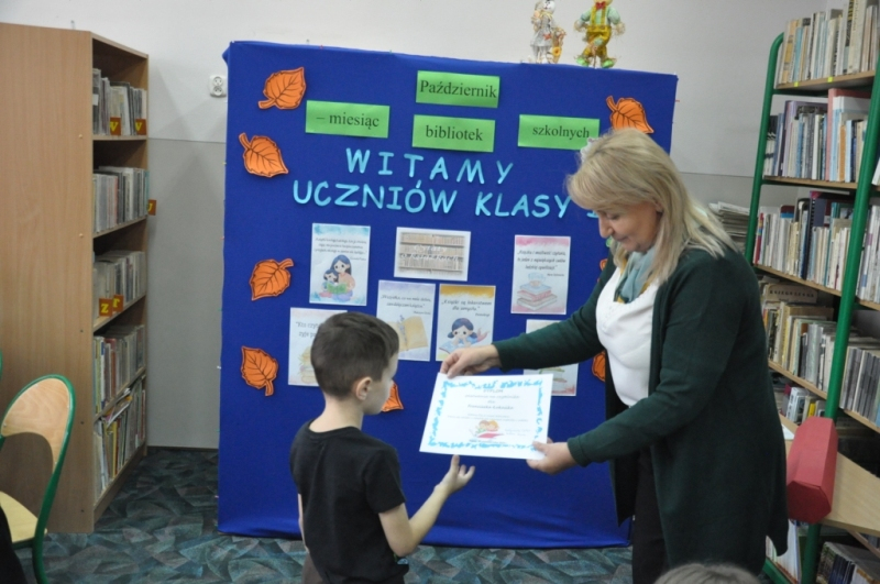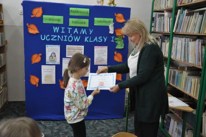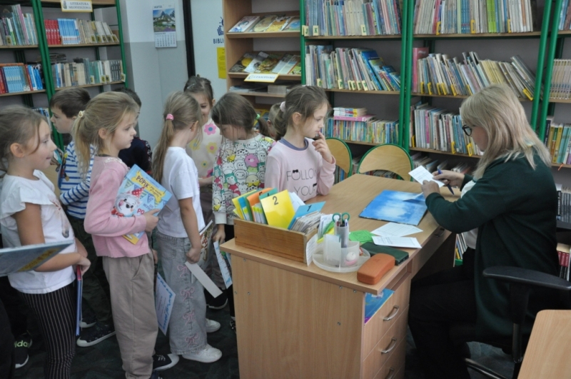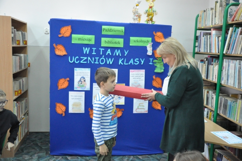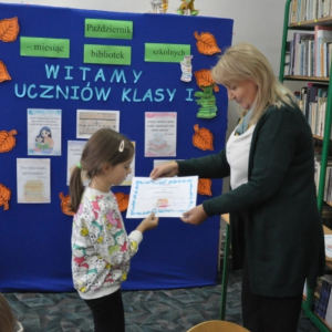 Najważniejszym momentem wizyty w bibliotece było pasowania na czytelnika. Na pamiątkę tego wydarzenia każdy uczeń otrzymał dyplom i upominek – zakładkę do książki. Po uroczystym pasowaniu pierwszoklasiści mogli wybrać książkę, którą zabrali ze sobą do domu.