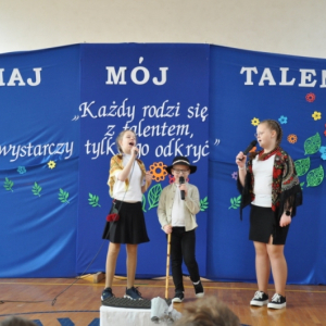 Publiczność dopisała i świetnie bawiła się przy piosenkach m.in. takich jak: „Lipka” w wykonaniu Antoniny Kobryń, Leny Chruściel i Wojtka Chruściela; „Halo, halo, tu Londyn”, którą zaśpiewał duet: Jan Czubaszek i Szymon Braksal; „Adrenalina”, którą zaśpiewał Natan Galicki. Doznań muzycznych w wersji instrumentalnej dostarczyła nam uczennica klasy VII Oliwia Kurek, która okazała się bezkonkurencyjna i otrzymała wyróżnienie.