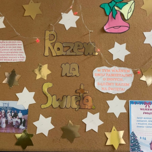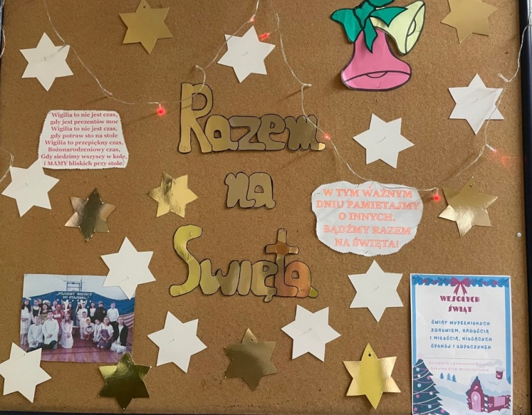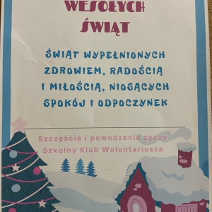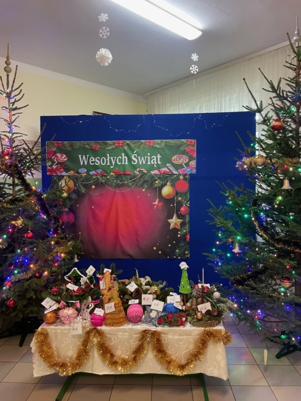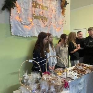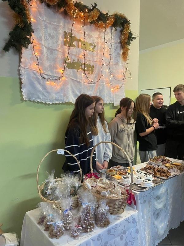 Szkolny Klub Wolontariusza przeprowadził także kiermasz słodkości i ozdób świątecznych, z którego dochód został przeznaczony w całości – 1100 zł. dla Jasia Greli, podopiecznego fundacji siepomaga.pl na kosztowną terapię genową.