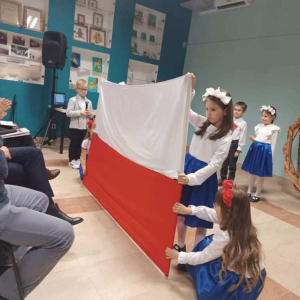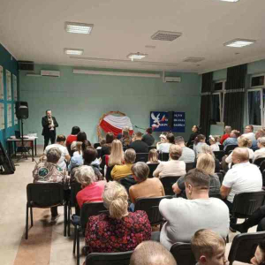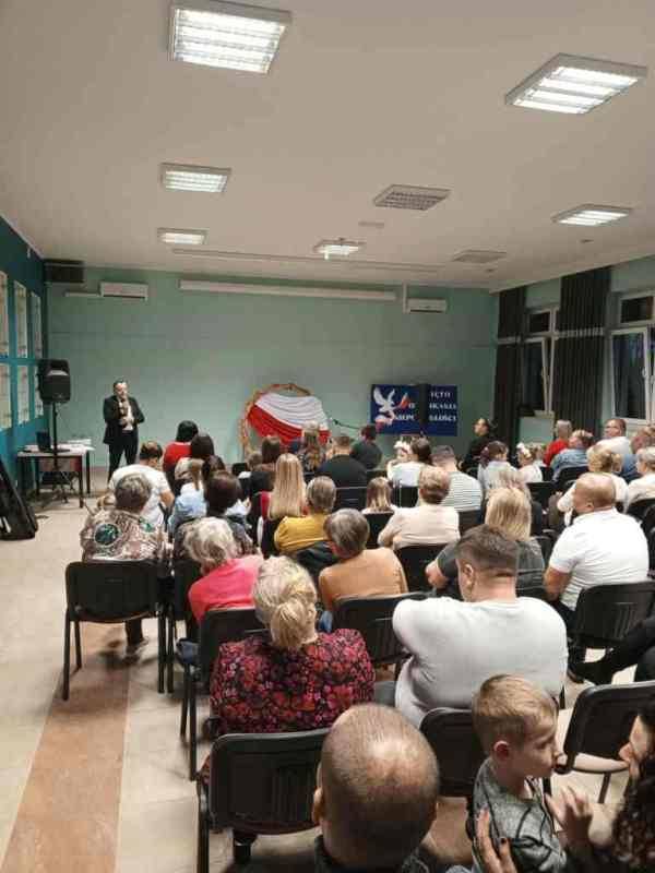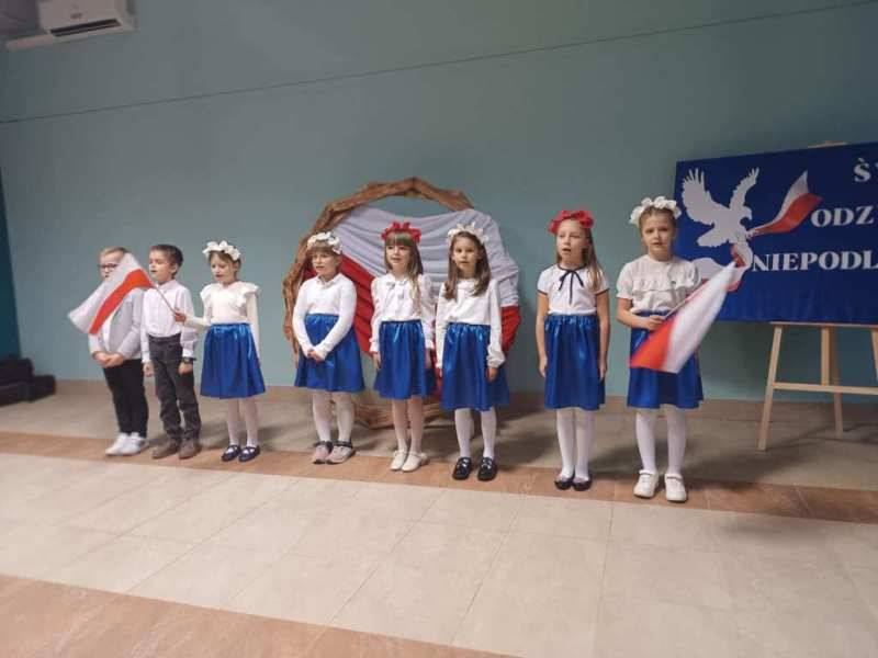 W niedzielny wieczór 9 listopada w Centrum Kultury w Dąbiu odbył się wyjątkowy wieczór patriotyczny, który zgromadził licznych mieszkańców naszej miejscowości. Spotkanie było okazją do wspólnego uczczenia Narodowego Święta Niepodległości i do refleksji nad historią naszego kraju. Na scenie zaprezentowali się uczniowie klasy I przygotowani przez wychowawcę Martę Kulik oraz uczennica klasy VII Oliwia Kurek. Ich występ wzruszył publiczność i został nagrodzony gromkimi brawami. Następnie wszyscy goście mogli wspólnie uczestniczyć w patriotycznym koncercie, śpiewając znane polskie pieśni razem z p. Joanną Goździak i p. Dominiką Gałka. Wśród licznie przybyłych gości znaleźli się mieszkańcy Dąbia, a także przedstawiciele lokalnych władz – Radny Gminy Łuków Tomasz Kulik oraz Wójt Gminy Łuków Mariusz Osiak. Spotkanie zakończyło się wspólnymi rozmowami przy herbacie i ciastku, które przygotowało Koło Gospodyń Wiejskich w Dąbiu.