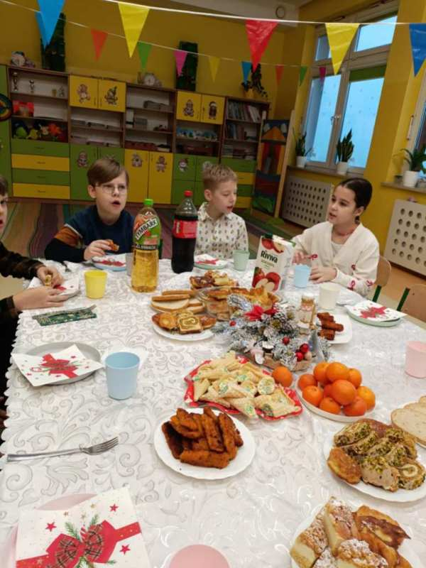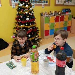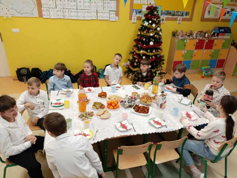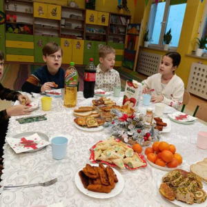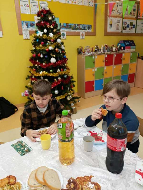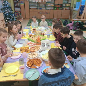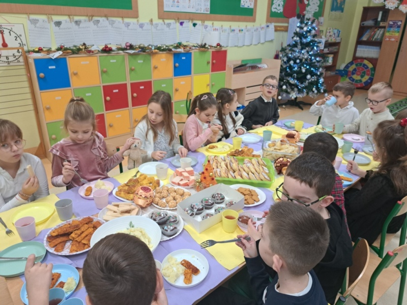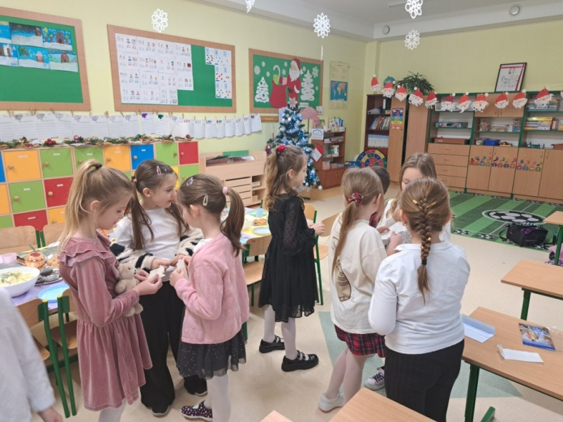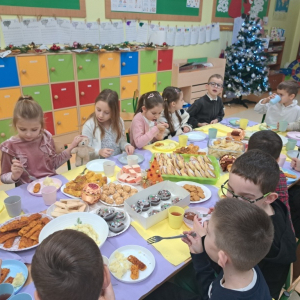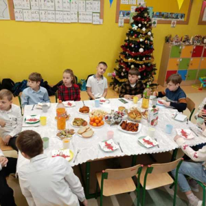 Wigilia klasowa uczniów klas 1 i 3 była wyjątkowym, pełnym ciepła spotkaniem, które na długo pozostanie w naszych sercach. Wspólnie spędzony czas przy świątecznym stole, dźwięki kolęd i szczere uśmiechy dzieci stworzyły atmosferę prawdziwej bliskości. Najmłodsi z wielkim zaangażowaniem dzielili się opłatkiem, składając sobie proste, ale płynące prosto z serca życzenia. W tych chwilach nie liczyły się oceny ani codzienne obowiązki — ważna była radość bycia razem, wzajemna życzliwość i magia nadchodzących Świąt. To spotkanie pokazało, jak piękną wspólnotę tworzą nasi uczniowie, a świąteczny nastrój połączył wszystkich w jedną, serdeczną klasową rodzinę.