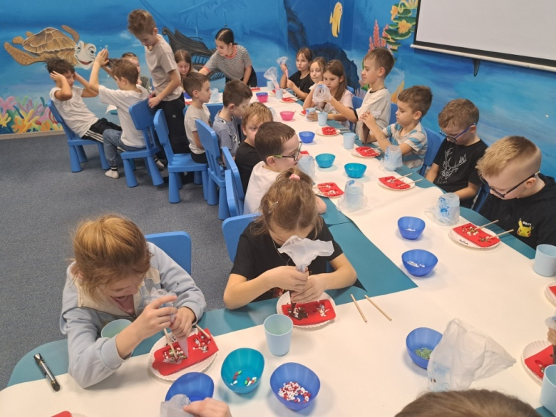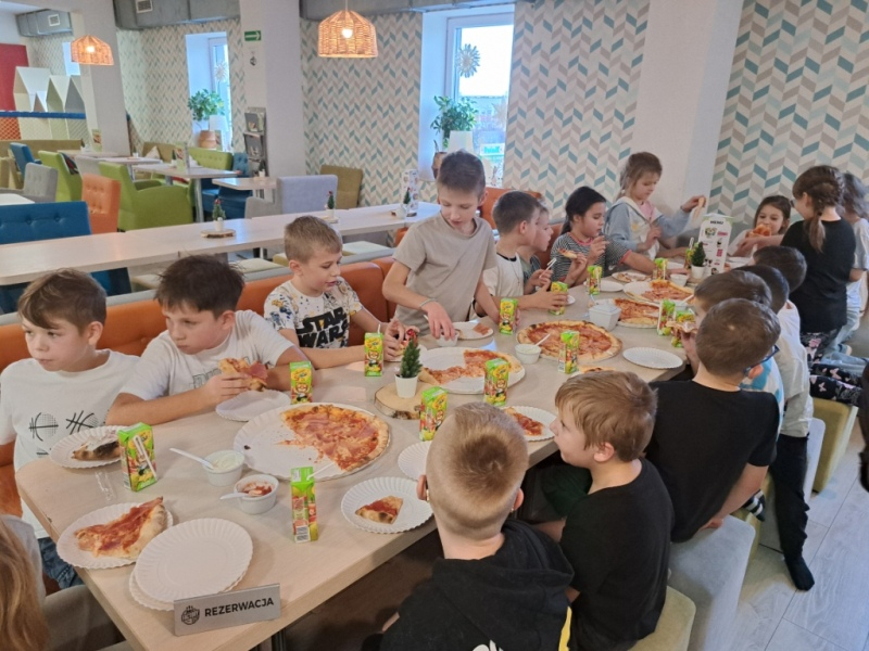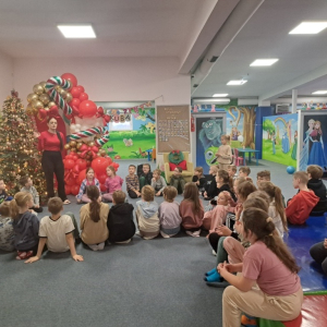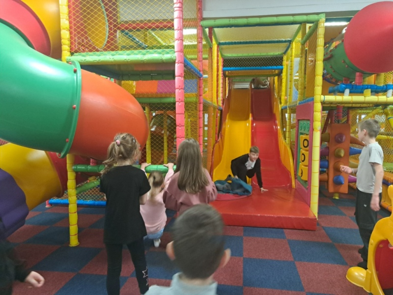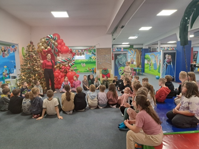 W dniu 9 grudnia uczniowie klas I–III naszej szkoły wzięli udział w wyjątkowej wycieczce do Siedlec. Pierwszym punktem wyjazdu było kino, gdzie uczniowie obejrzeli film pt. „Mikołaj i ekipa”. Świąteczna opowieść wprowadziła wszystkich w mikołajkowy nastrój. Dzieci z dużym zainteresowaniem śledziły losy bohaterów i chętnie dzieliły się wrażeniami po seansie. Kolejnym etapem wycieczki była wizyta w sali zabaw „Młynek”. Na uczniów czekało tam mnóstwo atrakcji oraz warsztaty tworzenia czekoladowych świątecznych lizaków. Podczas zajęć dzieci mogły własnoręcznie przygotować słodkie upominki. Wykonane lizaki sprawiły im wiele radości i były miłą pamiątką z wyjazdu. Był także czas na swobodną zabawę. Kolorowa sala zabaw, zjeżdżalnie i różnorodne konstrukcje dostarczyły uczniom mnóstwo ruchu i uśmiechu. Dzieci wróciły do domu zmęczone, ale bardzo szczęśliwe.