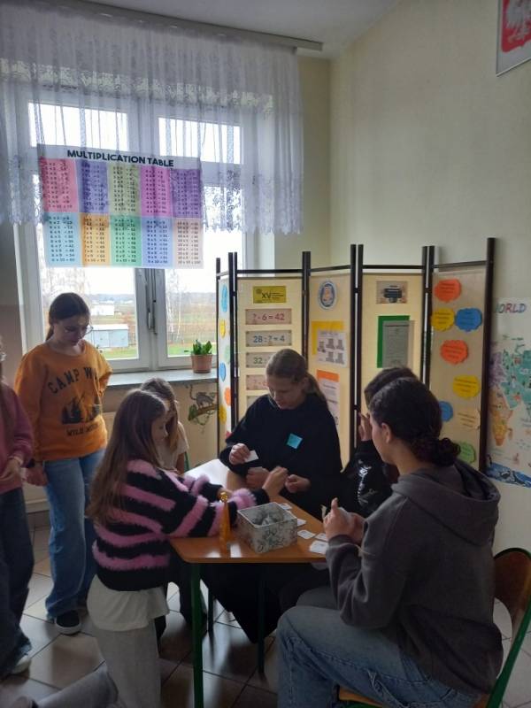 W dniu 21 listopada 2025 roku, jak co roku w trzeci piątek listopada, odbyły się w szkołach na całym świecie obchody XV Światowego Dnia Tabliczki Mnożenia, których celem było utrwalenie znajomości działań mnożenia oraz pokazanie, że matematyka może być świetną zabawą. W wydarzeniu uczestniczyła również nasza szkoła, uczniowie klas III – VIII oraz nauczyciele i pracownicy szkoły. Uczniowie brali udział w wyścigach tabliczki mnożenia, grach logicznych oraz rozwiązywali zadania, łamigłówki na specjalnie przygotowanych kartach pracy. Największym zainteresowaniem cieszyły się patrole egzaminatorów, które odwiedzały klasy i korytarze, sprawdzając znajomość tabliczki mnożenia wśród uczniów i pracowników szkoły. Egzaminatorami byli uczniowie z kl. VII i VIII. Każdy, kto bezbłędnie wypełnił test z tabliczki mnożenia, otrzymał tytuł MT EXPERTA Tabliczki Mnożenia.